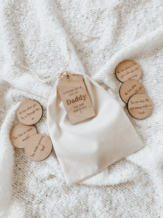 Reasons Why I Love My Daddy Personalised Wooden Token Bag
