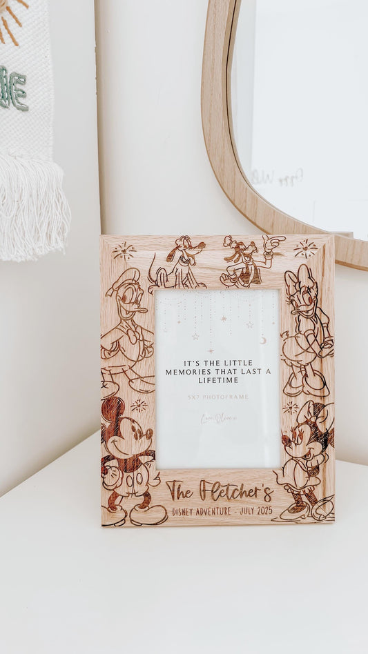 Personalised Solid Oak Disney Mickey & Friends Photo frame/ Unique Disney gifts/ Wooden Photo Frame with engraving