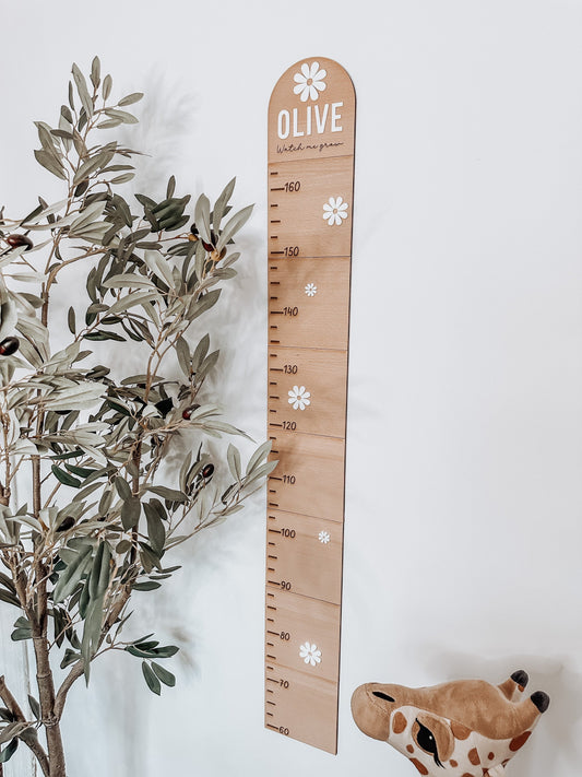 Personalised Flower Wooden Height Chart, Kids Growth Chart, Wooden Height Measuring, Nursery Wall Decoration, Baby Shower Gifts