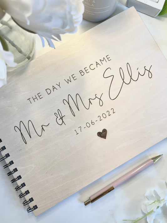 Personalised A4 wooden engraved wedding guest book/ wedding scrapbook/ memory book/ photo album/ memory gift/ photobook- Laser/Hand burnt