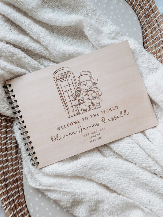 Personalised A4 wooden engraved Paddington Bear scrapbook
