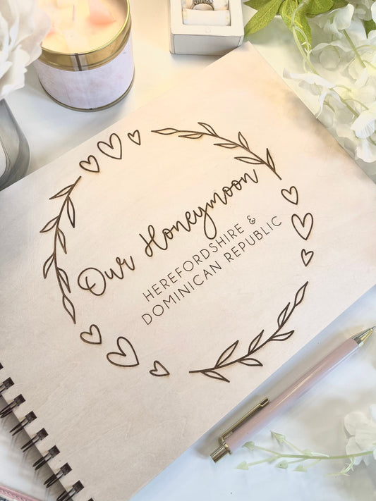 Personalised A4 wooden engraved honeymoon journal / wedding scrapbook/ memory book/ photo album/ memory gift/ photobook- Laser/Hand burnt
